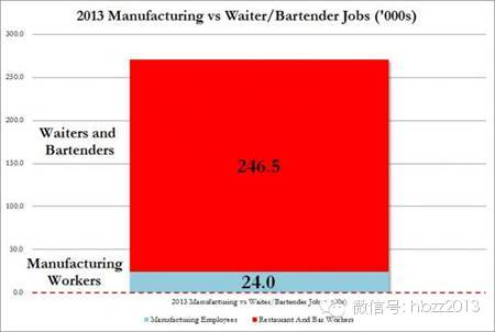 2013年,製造業就業崗位增加僅2.4萬人,不及酒吧招待的十分之一