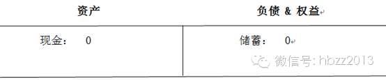 先看一張最簡單的銀行資產負債表,假如在初始狀態,一家銀行既無資產也無負債,也沒有所有者權益,它的狀態可以簡化為: